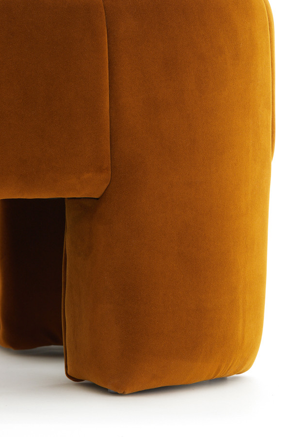 A Batoemi puff luxus hatású okker bársony kárpitozással készült, amely elegáns és stílusos kiegészítője lehet bármely enteriőrnek. Kompakt mérete révén használható extra ülőhelyként, lábtartóként vagy dekoratív bútordarabként.