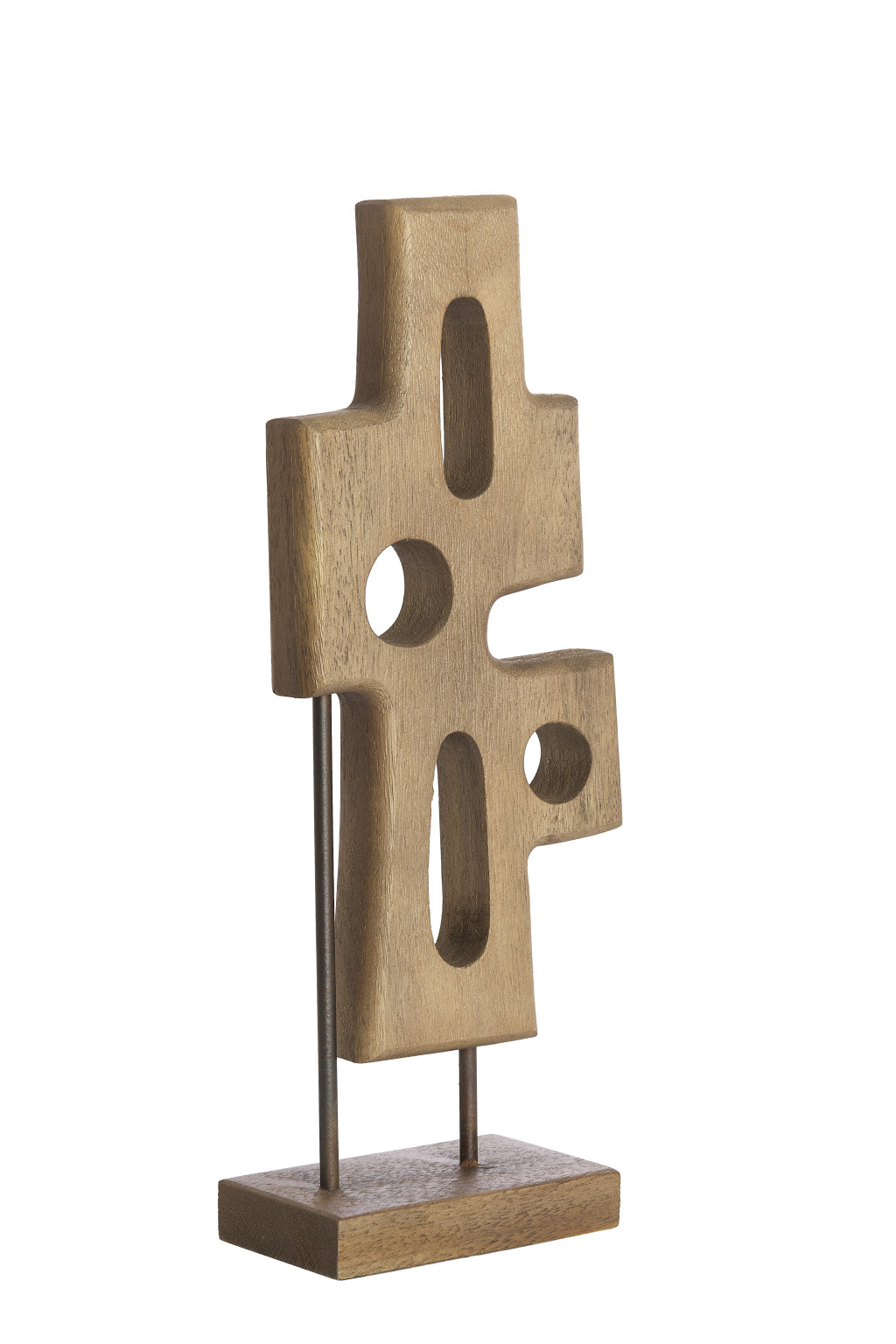 A SALIO szobor teljes egészében fából készült, matt barna felületkezeléssel, amely modern és minimalista karaktert kölcsönöz a tárgynak. Letisztult, szoborszerű formája elegáns fókuszponttá válik bármely enteriőrben. A 45 cm magas darab ideálisan helyezhető konzolasztalra, komódra vagy polcra, ahol időtálló, harmonikus megjelenésével finoman emeli a tér stílusát.