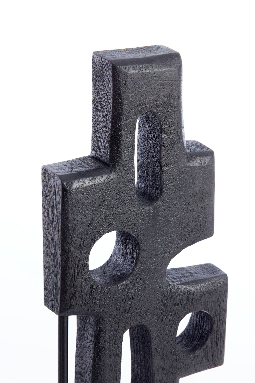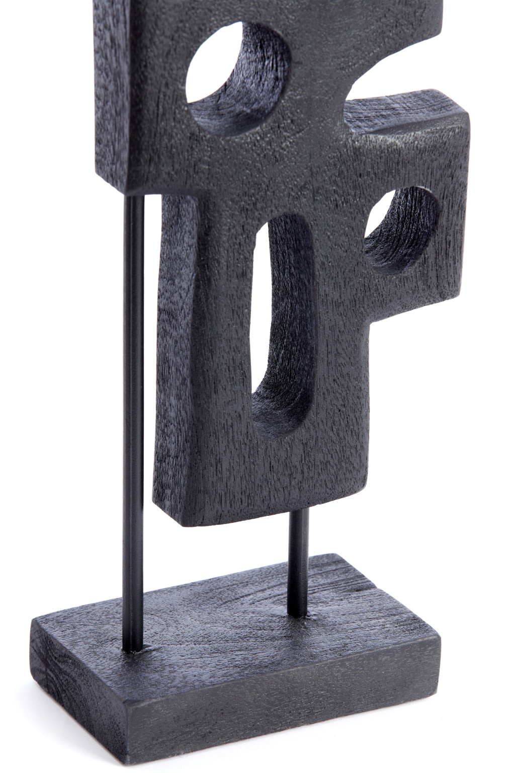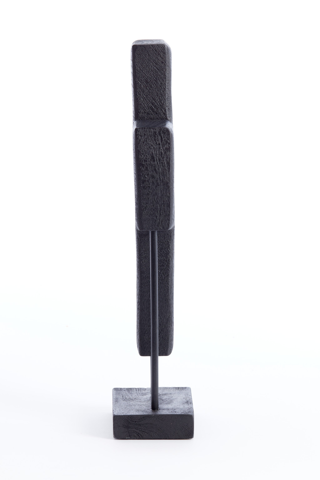 A SALIO szobor teljes egészében fából készült, matt fekete felületkezeléssel, amely modern és minimalista karaktert kölcsönöz a tárgynak. Letisztult, szoborszerű formája elegáns fókuszponttá válik bármely enteriőrben. A 45 cm magas darab ideálisan helyezhető konzolasztalra, komódra vagy polcra, ahol időtálló, harmonikus megjelenésével finoman emeli a tér stílusát.
